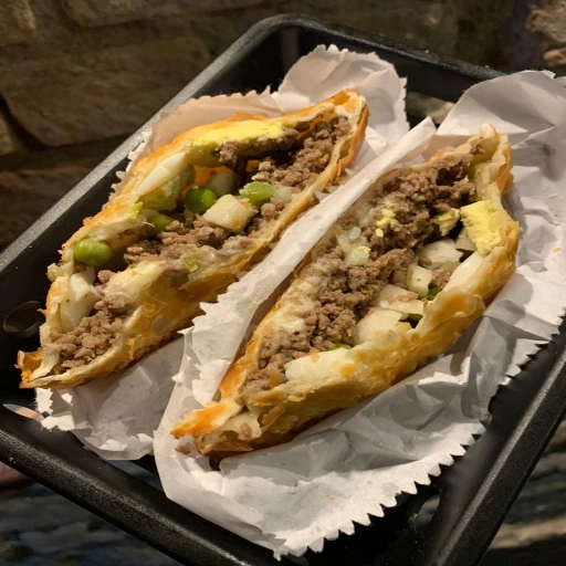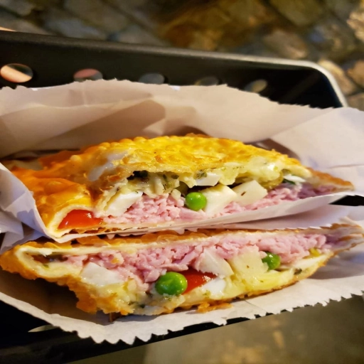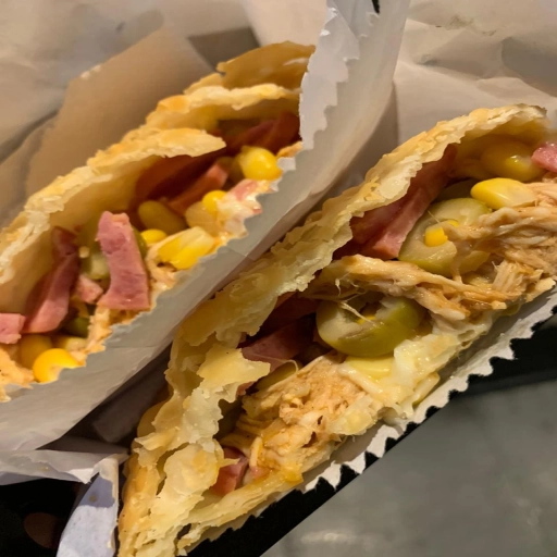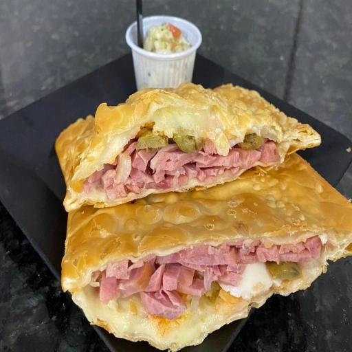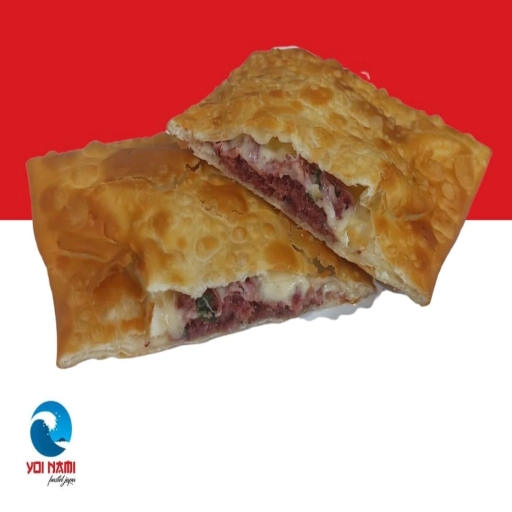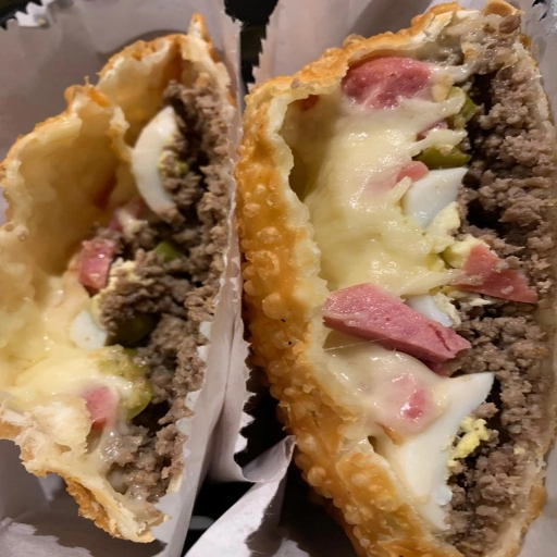 Carne moída, calabresa picada, ovo, azeitona , molho de pimenta , Catupiry ou muçarela.